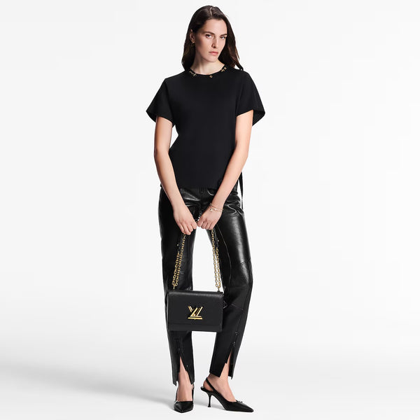 Crafted from the House’s emblematic Epi leather, the Twist MM chain bag features the now-iconic LV Twist lock, a sculptural signature in gleaming golden metal. Unexpectedly roomy thanks to the cleverly designed “wave” base, this beautifully made bag is a fashionable day-to-evening companion.