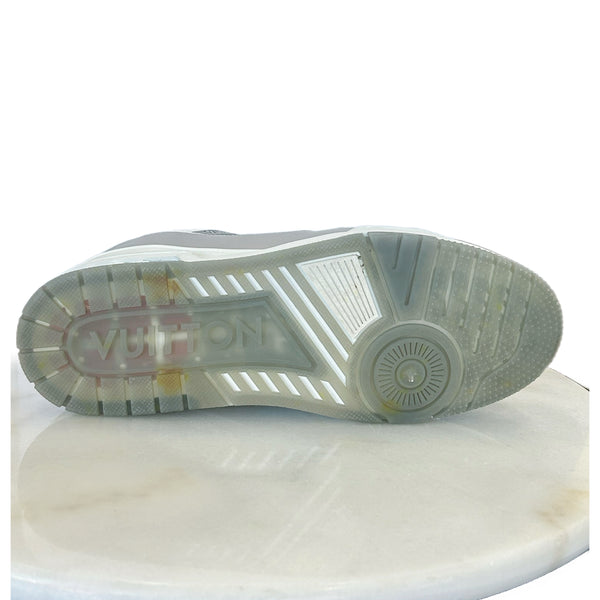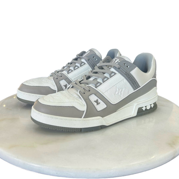 Elevate your style with the Louis Vuitton Trainer Low 'Grey White'. Crafted from supple leather, this sneaker boasts a chic and sporty silhouette.