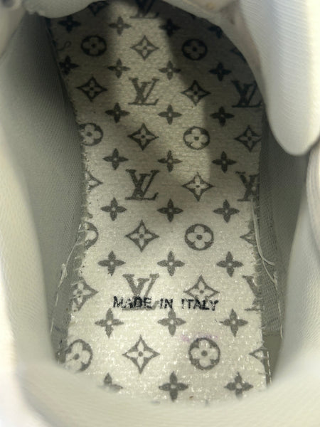 Its grey and white color-way exudes a timeless elegance, while the iconic LV monogram adds a touch of luxury. Experience unparalleled comfort with a padded collar and cushioned insole.