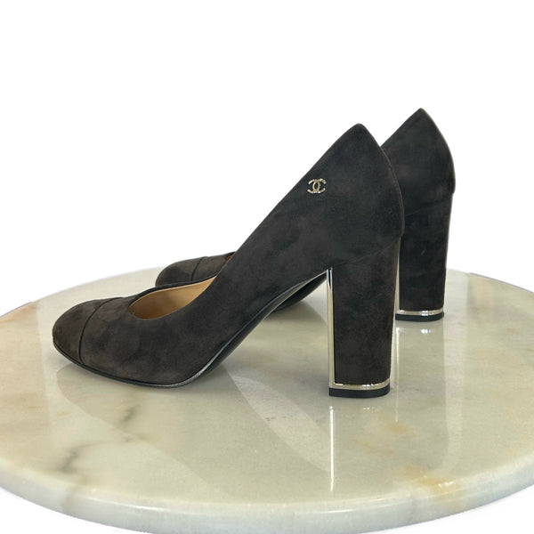 CHANEL - Suede CC Block Heels / Pumps Sz 40C