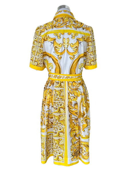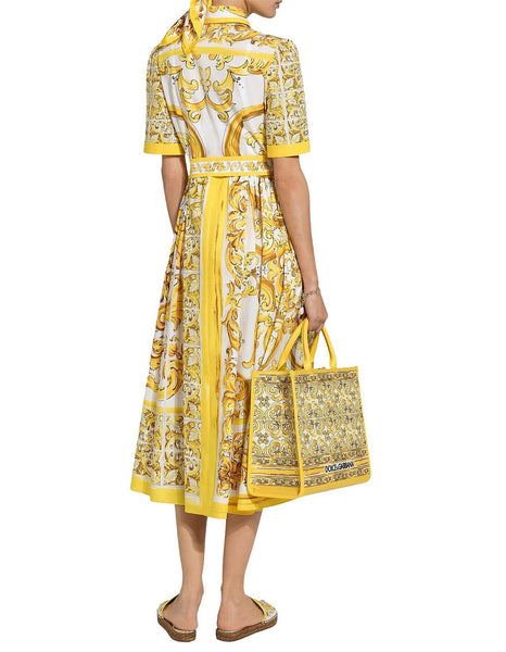 Dolce & Gabbana's Majolica Print Poplin Shirt Dress is a timeless piece that combines elegance with comfort, ideal for special occasions and cocktail parties.