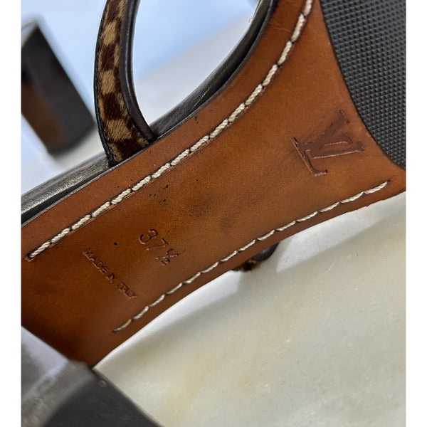 LOUIS VUITTON - Damier Monogram Flower Block Sandals Sz 37.5