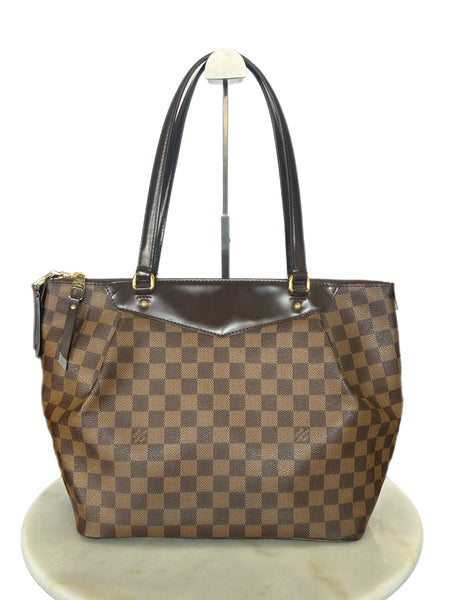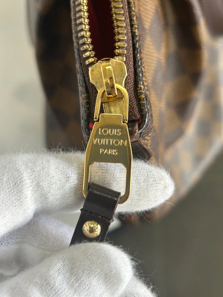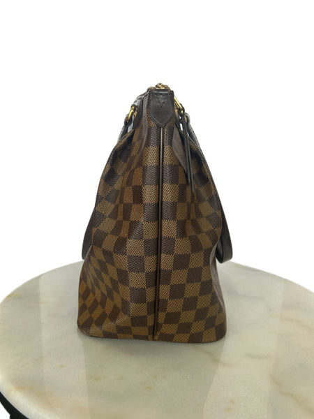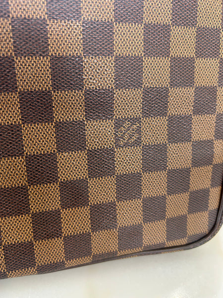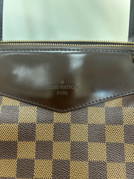 This Elegant Tote in Damier Ebene canvas with Shiny Brown Leather Trim is Lightweight and Roomy making it Perfect for Everyday.