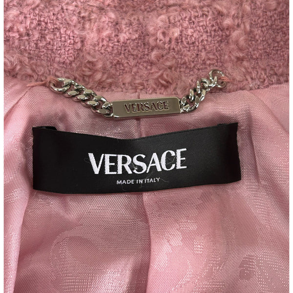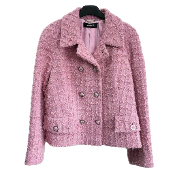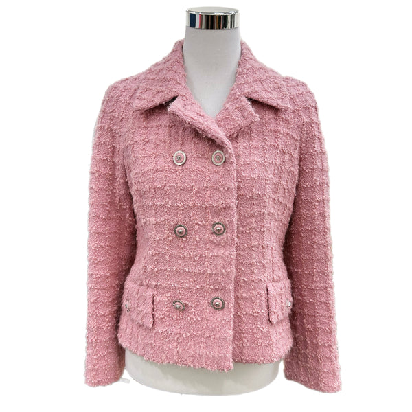 Double-Breasted Bouclé Tweed Jacket in Pink
